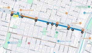 Recorrido y puntos de cierre en Avenida Grecia