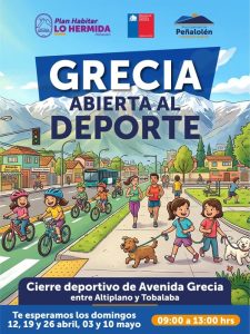 Con el objetivo de promover el uso saludable de los espacios públicos, la Municipalidad de Peñalolén, en conjunto con el MINVU y el Plan Habitar Lo Hermida, han dado inicio a la iniciativa Grecia Abierta al Deporte. Este programa transforma un importante tramo vial en un centro recreativo para toda la familia.