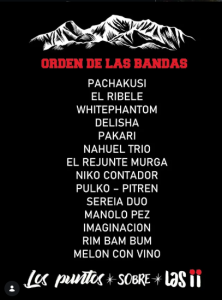 En esta nueva edición, el festival contará con una variada parrilla de artistas, entre ellos Pachakusi, El Roble, Whitephantom, Delisha, Pakari, Nahuel Trío, El Rejunte Murga, Niko Contador, Pulko-Pitren, Sereia Dúo, Manolo Pez, Imaginación, Rim Bam Bum y Melón con Vino.